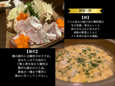 鍋料理に最適:クエならではのぷりぷりとした食感と、