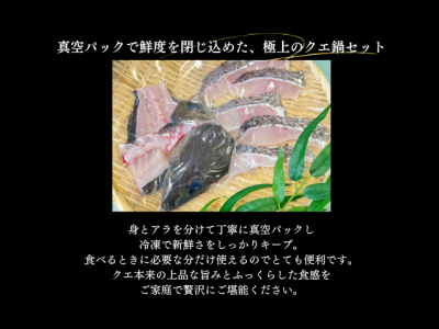 そのまま鍋に入れるだけで本格的なクエ鍋が楽しめます。